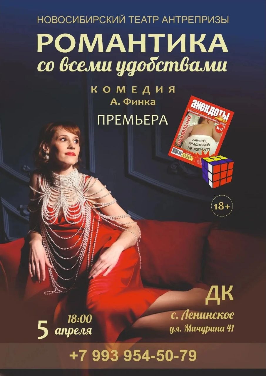 5 апреля в 18:00 Ленинский Дом Культуры и Новосибирский театр антрипризы приглашают на комедийный спектакль "Романтика со всеми удобствами" (автор А.Финк,