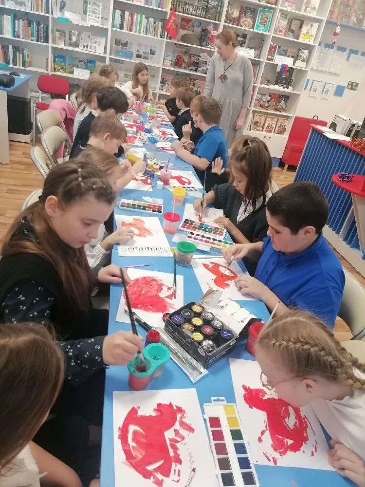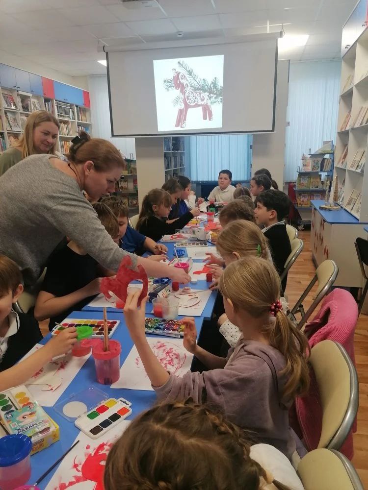 К нам в гости пришли ученики 3А класса Ленинской школы № 47, кл. рук. Утева Ольга Юрьевна, ребята пришли помочь изготовить новогодние атрибуты для новогоднего украшения нашего Дома Культуры. Дети с удовольствием изготавливали и расписывали красных лошадок.