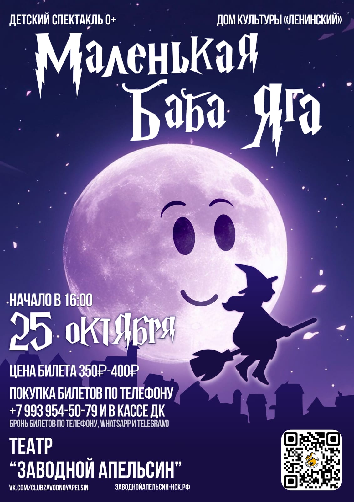 25 октября в 16:00 театр "Заводной апельсин" приглашает на музыкальную сказку для всей семьи по мотивам повести Отфрида Пройслера «Маленькая Баба-Яга» (0+).