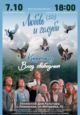 По просьбам жителей Морского сельсовета 7 октября в 18:00, в рамках декады пожилого человека пройдет кинопоказ фильма "Любовь и голуби"(12+)