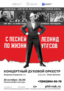 19 октября в 16:00 приглашаем посетить Концертный духовой оркестр к 130-летию со дня рождения Леонида Утесова "С песней по жизни".