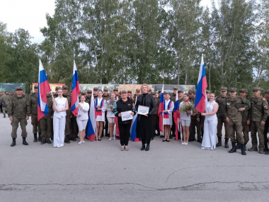Около 400 зрителей-курсантов стоя аплодировали весь концерт После каждого номера они одаривали выступающих букетами полевых цветов, такая благородность и патриотизм очень порадовали участниц коллектива.