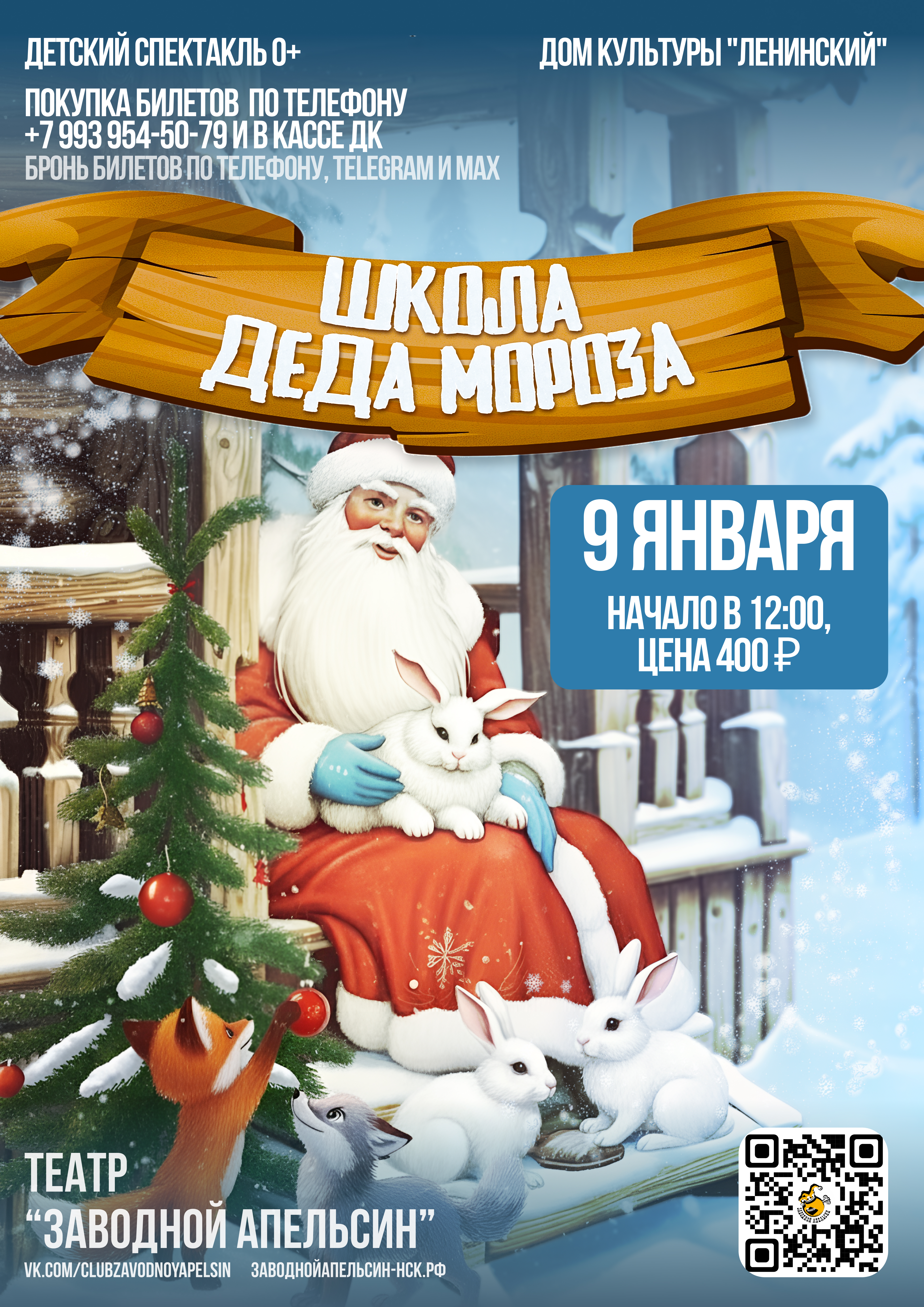 9 января в 12:00 театр "Заводной апельсин" приглашает на спектакль "Школа Деда Мороза" (0+).